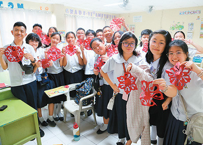 r日前,在位于菲律宾棉兰老岛北苏里高省的孙逸仙小学,学生们在中文课堂上学习春节文化。